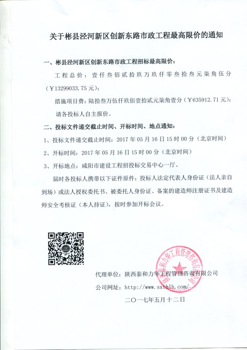 铜川市耀州区惠塬经济技术开发区新能源材料片区标准化厂房及配套基础设施建设项目排水管网工程最高限价的通知