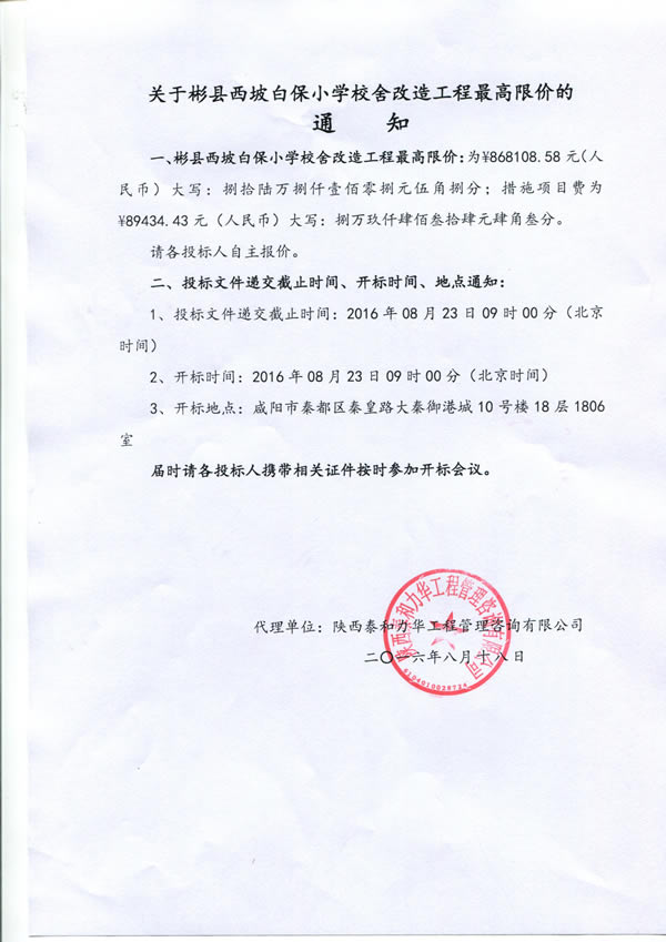 彬县西坡白保小学校舍改造工程
