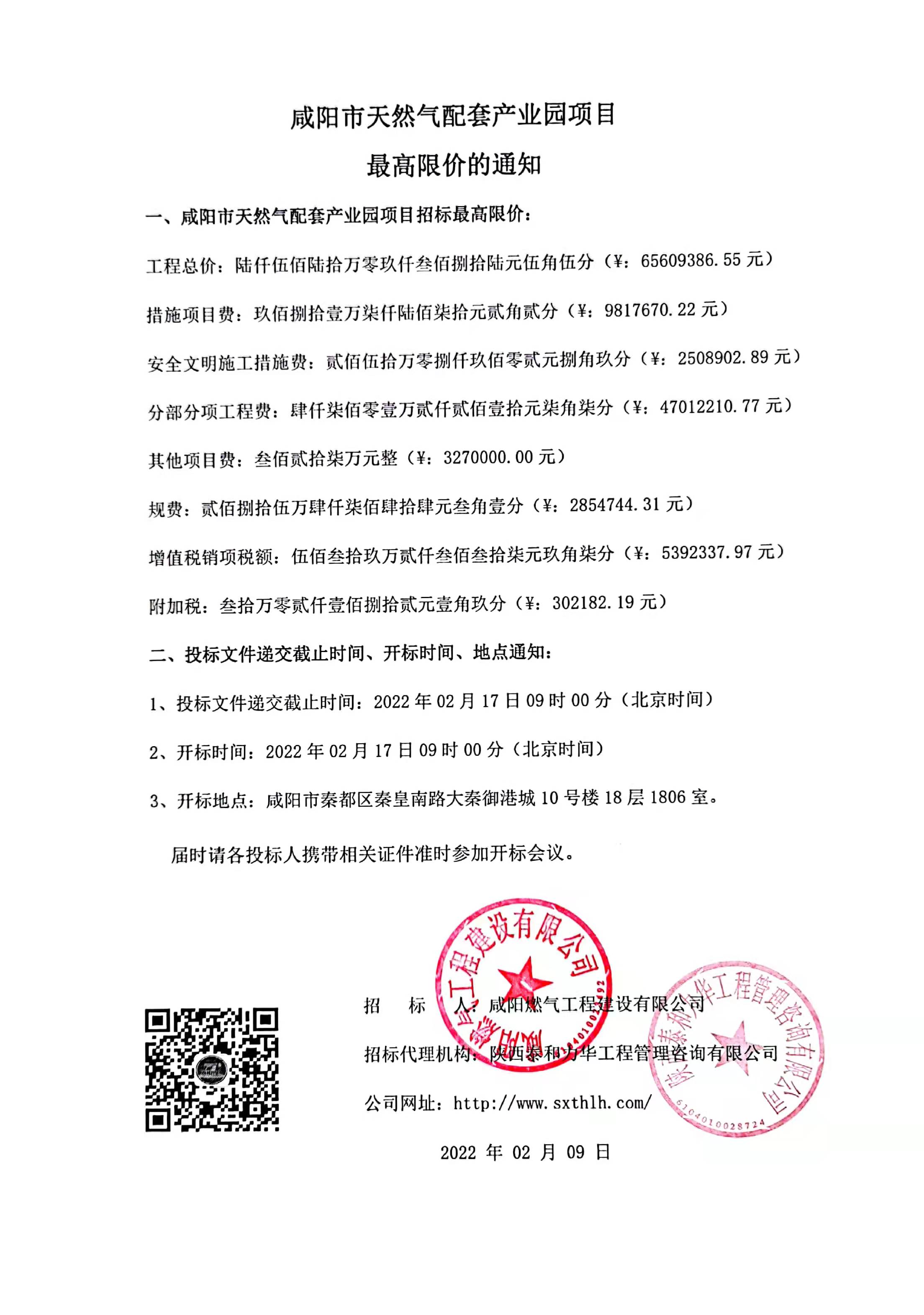 咸阳市天然气配套产业园项目最高限价的通知
