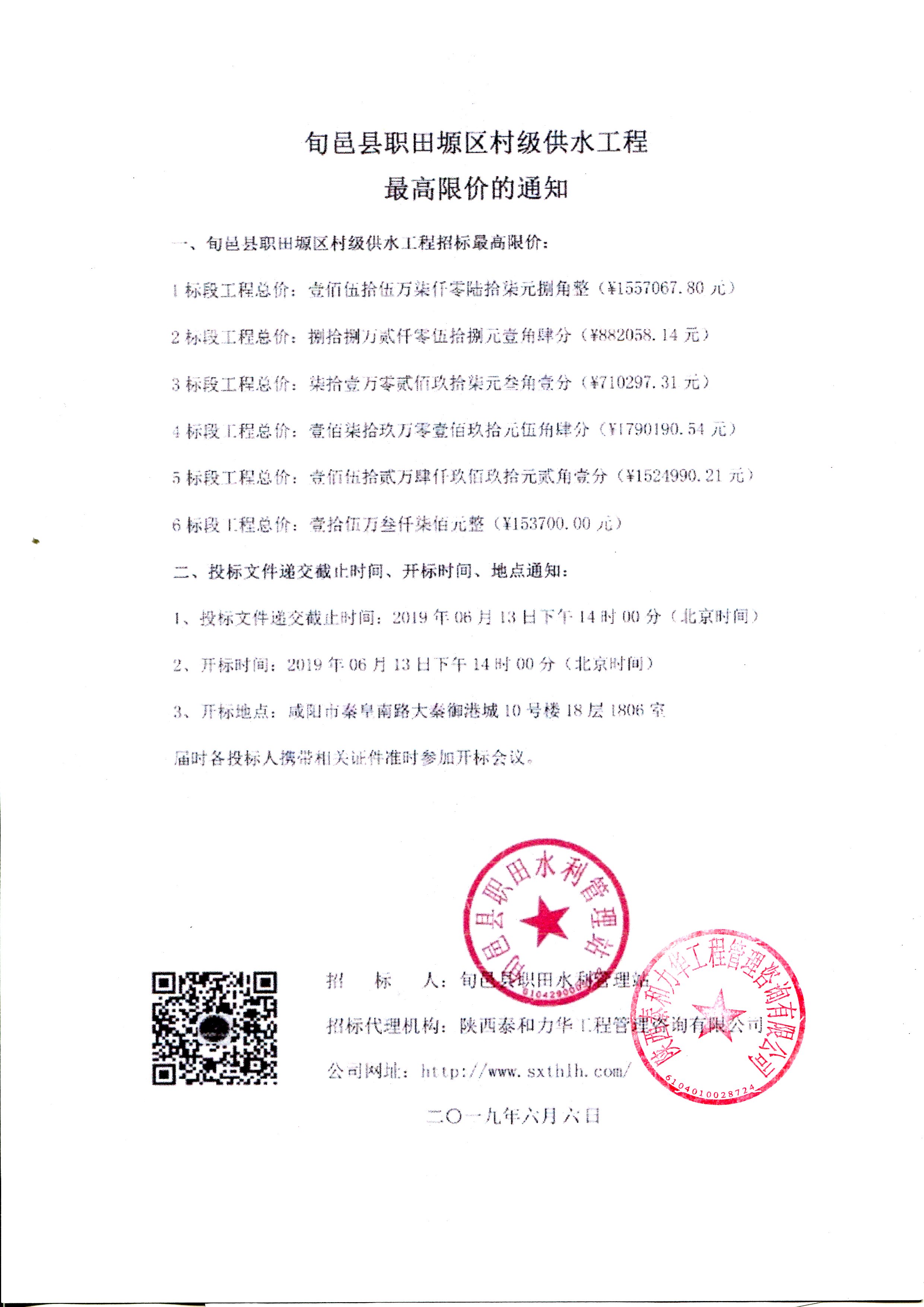 旬邑县职田塬区村级供水工程最高限价