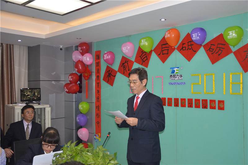 在深入分析了经营管理中存在的问题和不足后,程虎卷总经理对2018年的工作作了安排部署。他指出,时间是开拓者前行的刻度,是奋斗者筑梦的见证。新的一年,泰和力华要高扬“谦诚务实,不忘泰和初心;团结奋进,践行力华使命”的主旋律,坚持把特色业务做精、优势业务做专、新兴业务做好,进一步加大市场开发力度,全面推行精细化管理,大刀阔斧深化机制改革,持之以恒加强人才培养,力度不减抓好团队建设,深入挖掘推广泰和力华文化,确保全年经营产值增长20%以上。
