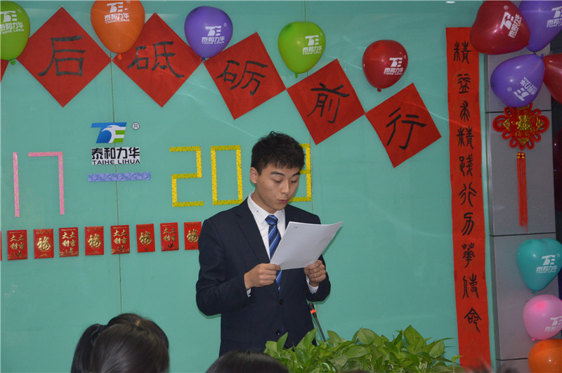 程虎卷总经理在讲话中指出,2017年是泰和力华值得咀嚼和回味的一年。一年来,公司全体同仁紧紧围绕“五个聚焦”,立足本职,辛勤工作,以青春和激情演绎了泰和力华的精彩故事,用心血和汗水发出了泰和力华好声音,使得公司在市场开拓、团队建设、机制创新、文化推广、泰和力华大家庭建设等方面取得了新成绩。