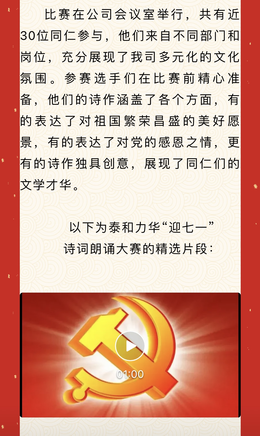 诗词朗诵庆七一 泰和力华感恩党