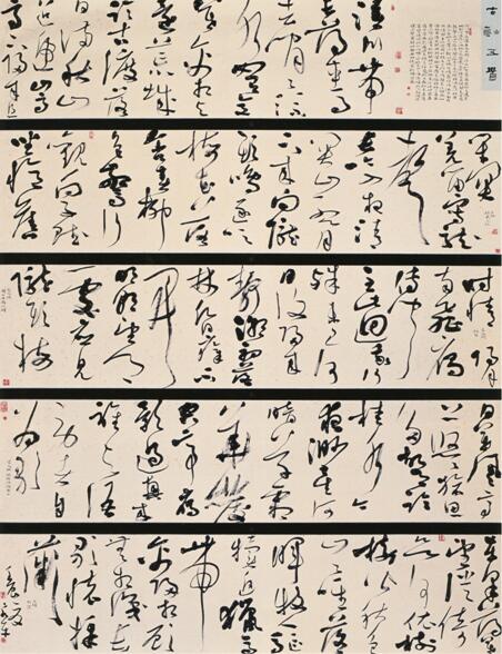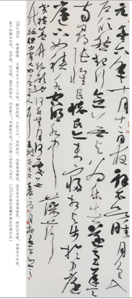 以前多见他写手卷,写六尺,写八尺之内的条幅,但现在他更在八尺大纸上书写五言绝句,其气魄之大,把控之稳,都达到了一个新的层次。据其所言,为了写好八尺之内的少字书法,他足足写了几刀纸,有时一写就到了深夜。梅花苦寒,没有他的那种执着,没有苦练不辍的干劲,买有对于书法苦苦的追寻,没有通过书写不断生发的灵性,他是很难达到今天的这样娴熟韧达,洗练绮丽。